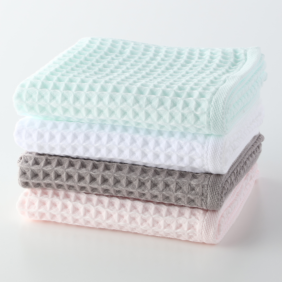 It is made from a unique hollow yarn with exceptional quality, utilizing crevices within the yarn itself to generously capture air. The unique 3-dimensional texture of Uchino’s Air Waffle structure feels luxurious and gentle on the skin. The characteristic of this unique weave offers the finest cushioning properties, resulting in an exquisitely lightweight and resilient towel, superior in water absorption and heat retention, and also quick drying.