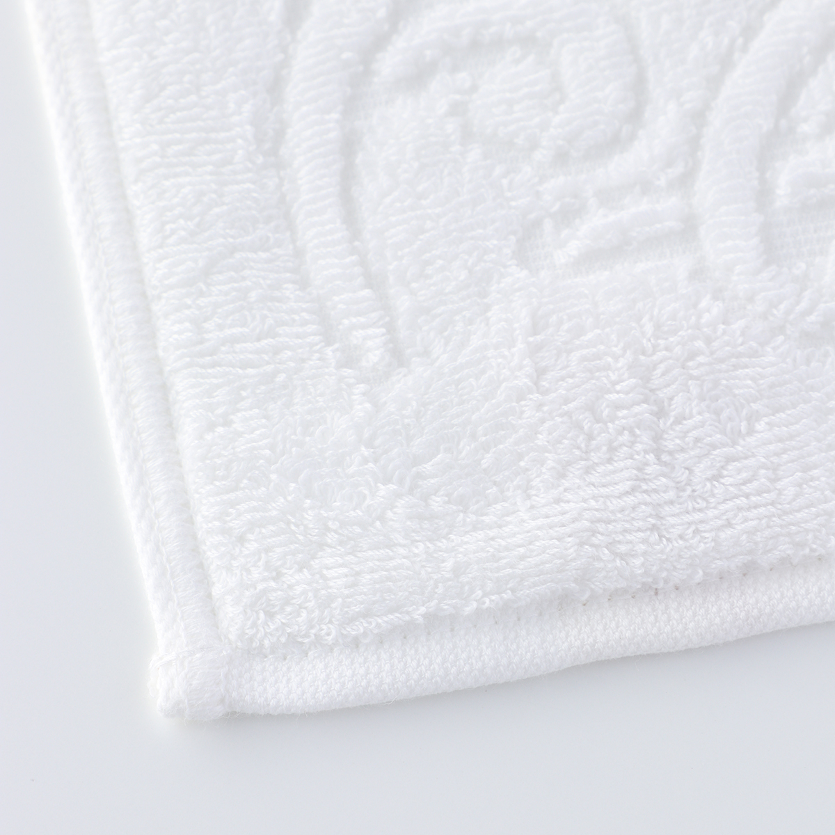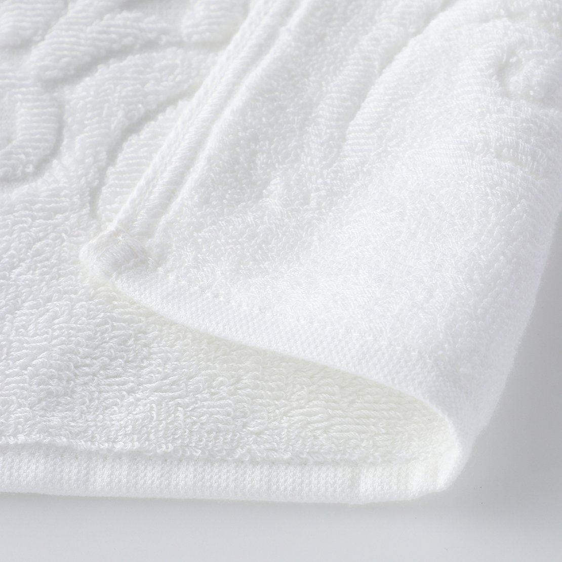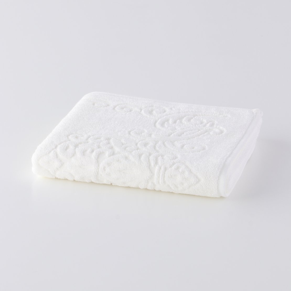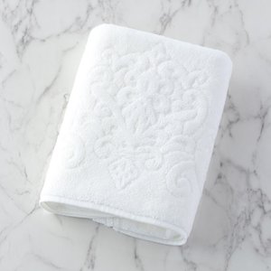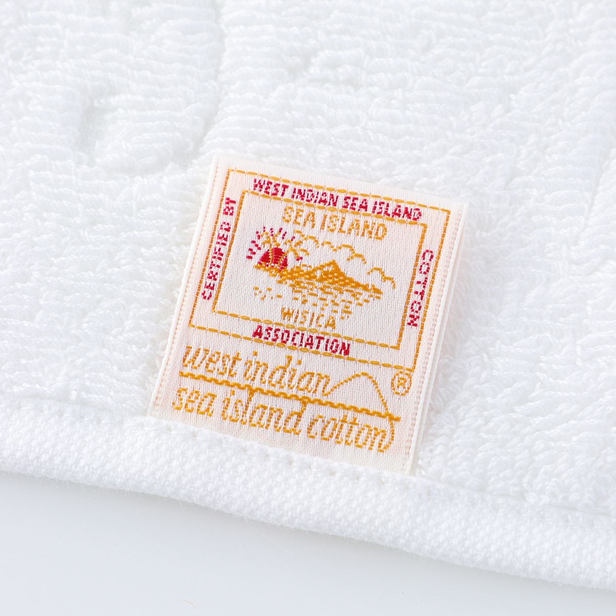 The world's finest cotton, "Sea Island Cotton," nicknamed the jewel of fibers, is used for the pile portion. The gorgeous medallion pattern is tightly woven with 50-count double-ply yarn. This towel has a smooth, glossy finish that is unique to Sea Island Cotton, which has long fibers. Its texture feels like high-class cashmere. Although it is cotton, it has a dazzling silk-like lustre.